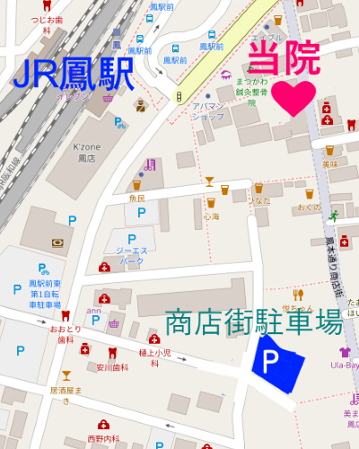 鳳駅からクリニックまで徒歩ルート